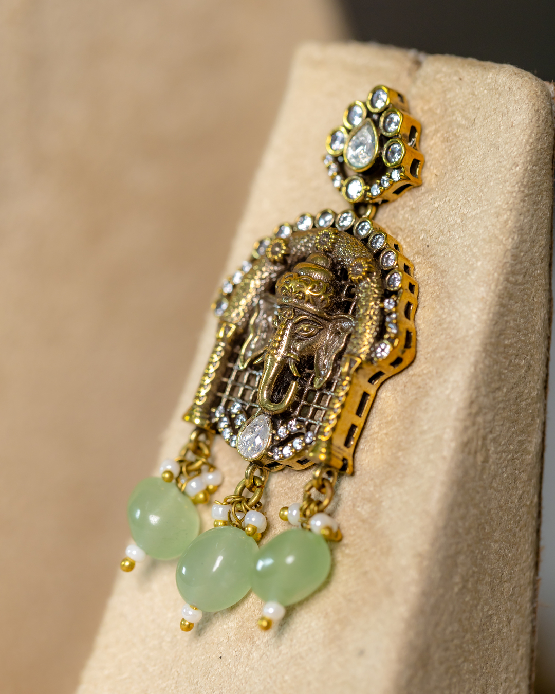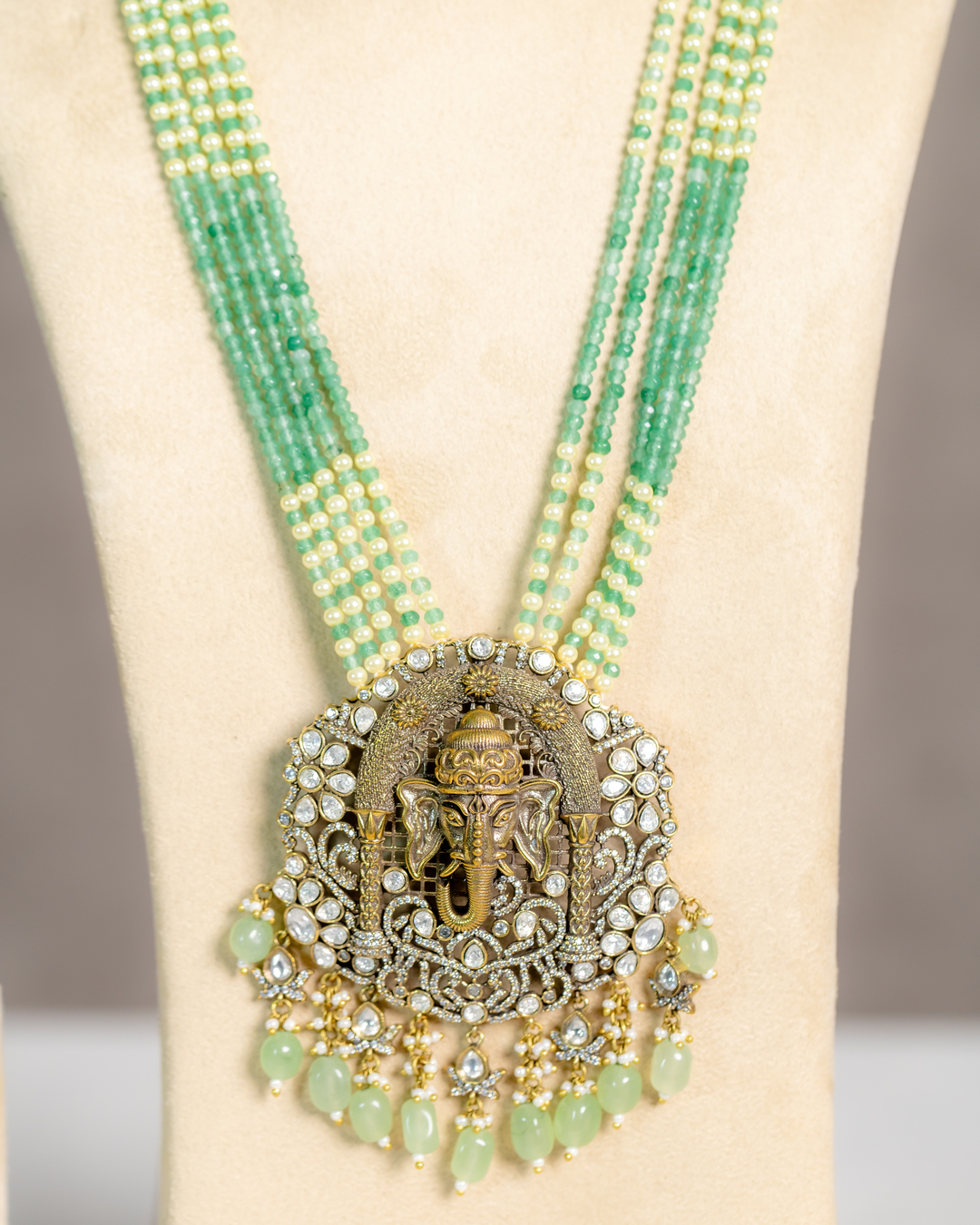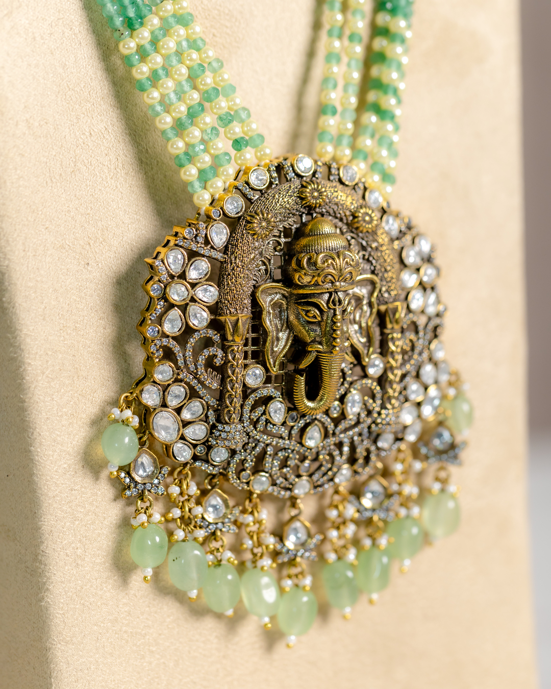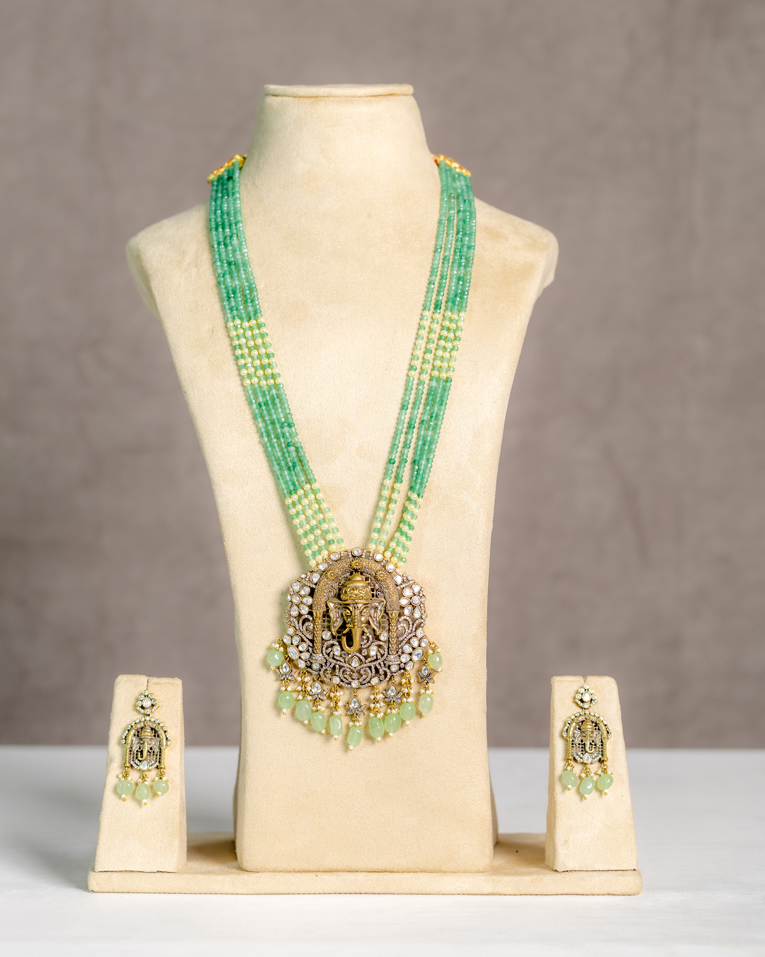Binaka Semi-precious Onyx Beaded Long Ganesh Necklace Set