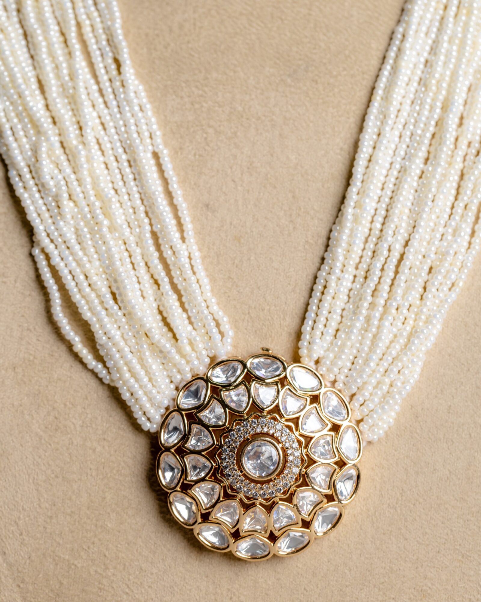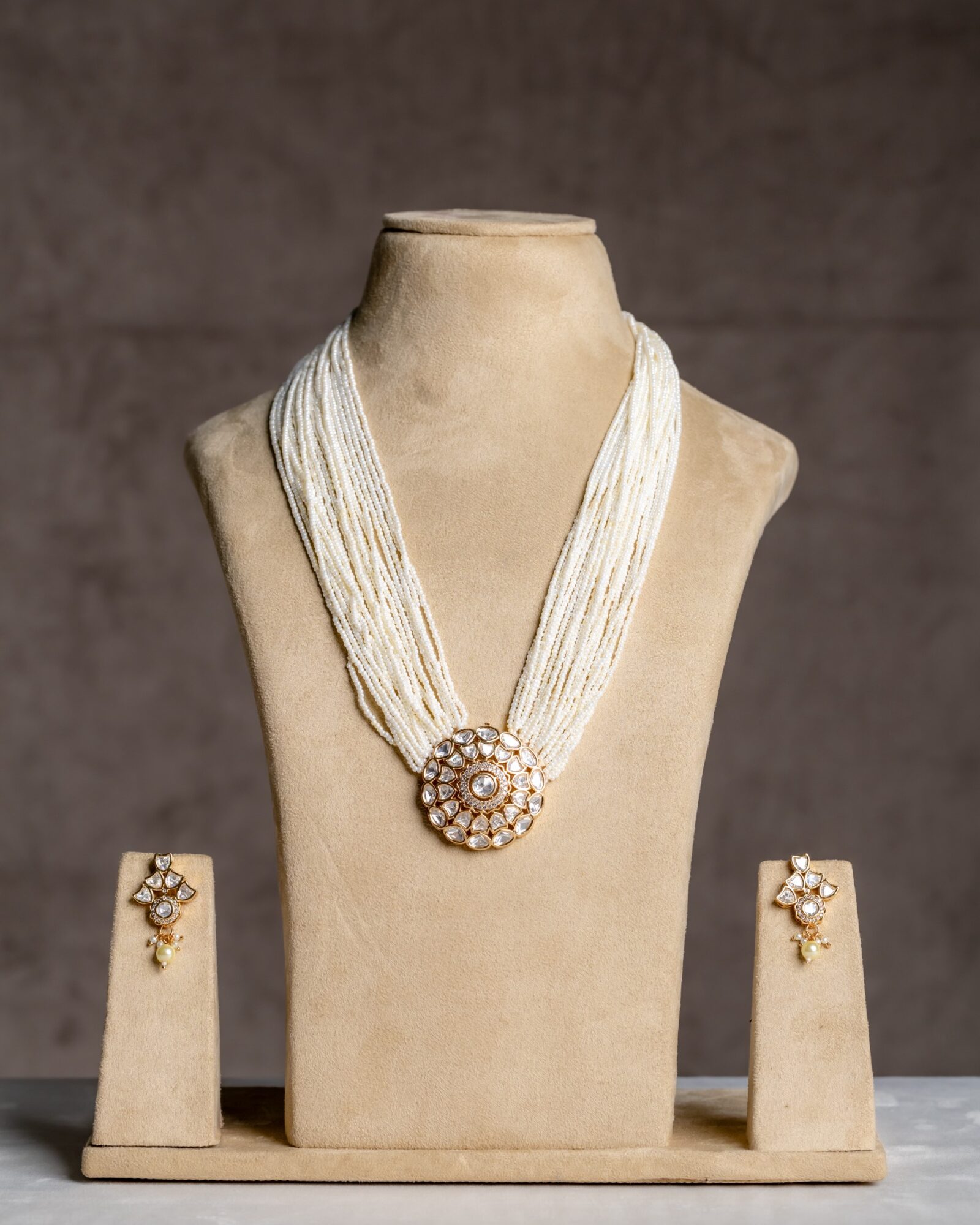 Emily CZ Stone-Studded & Pearl Beaded Long Necklace Set