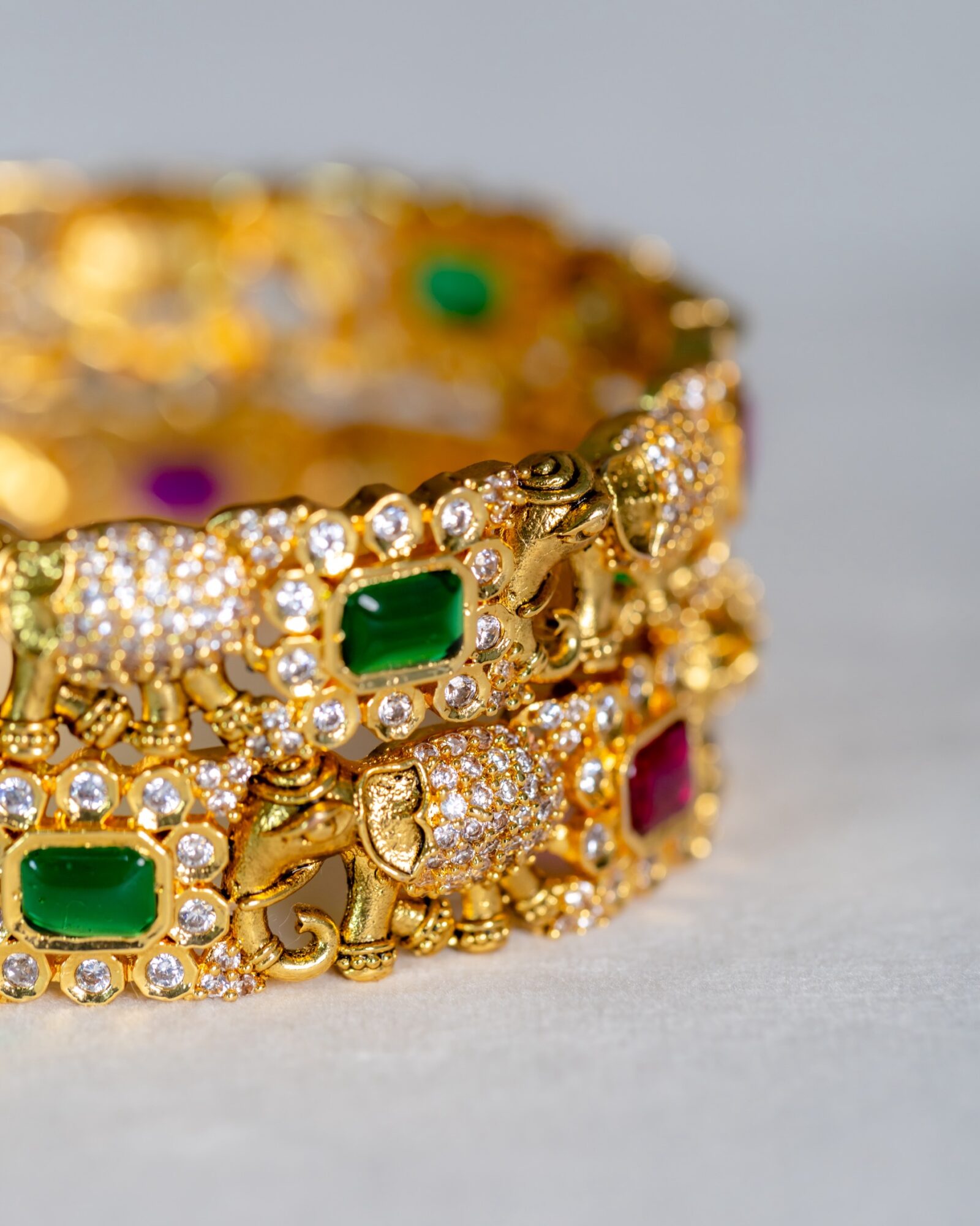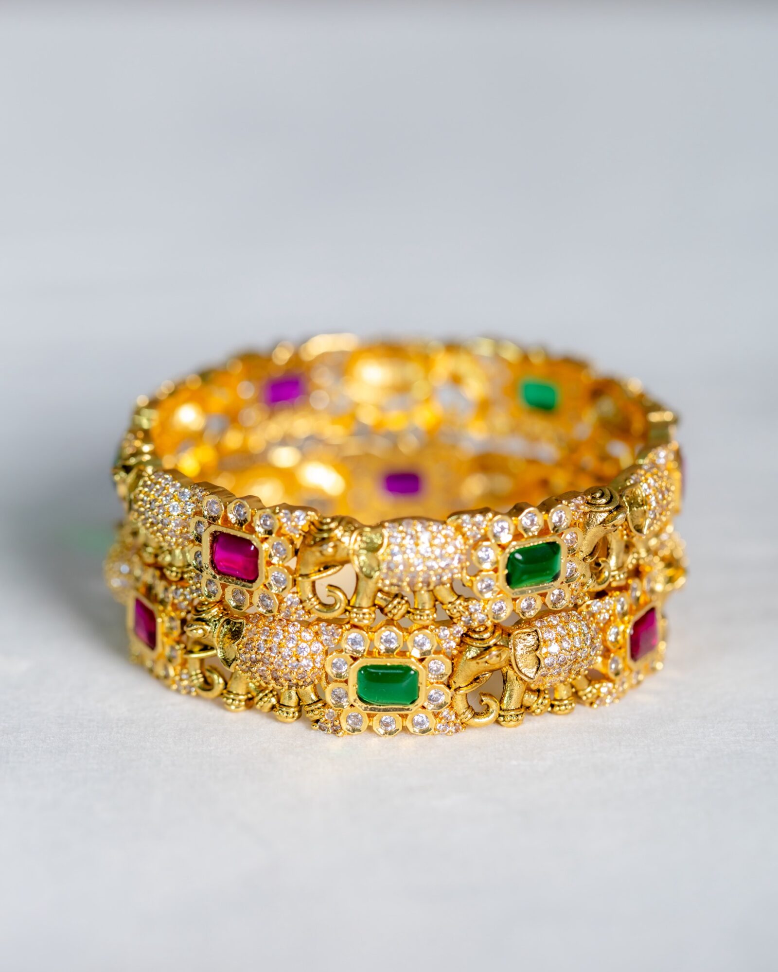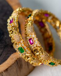 Haathi Red and Green Stone-studded Gold Bangle Set
