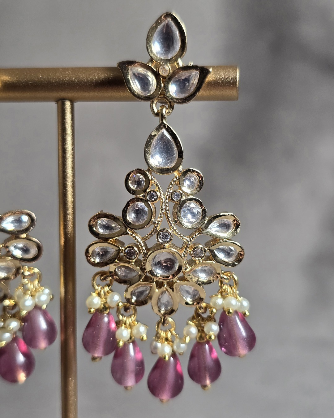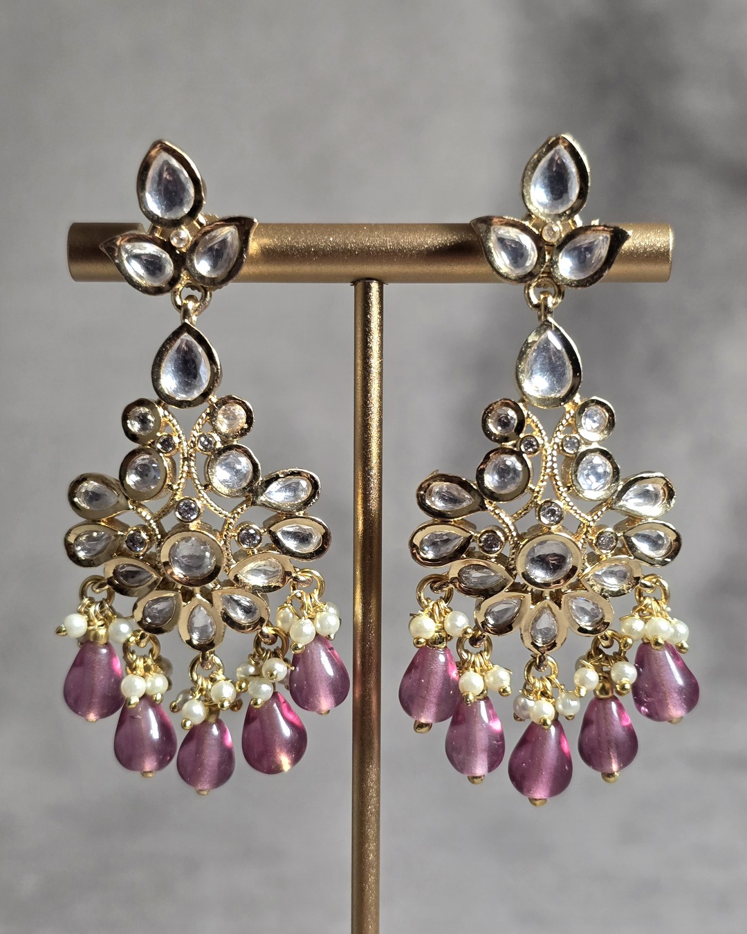 Heidi Polki Stone-studded and Micron Gold-plated Fancy Earrings with Semi-precious Beads