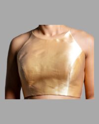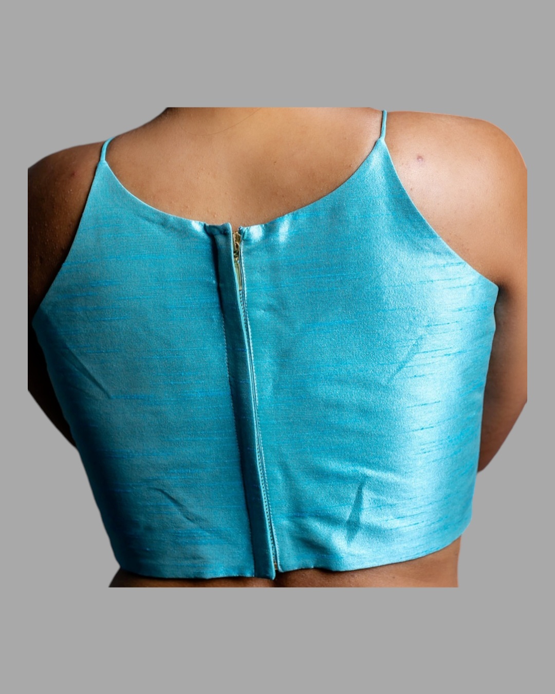High Jewel Neck Dupion Silk Sleeveless Saree Blouse