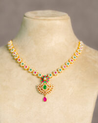 Jasmine Floral Multicoloured Pearl Short Necklace Set