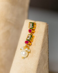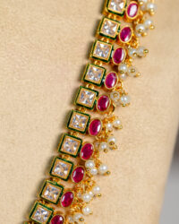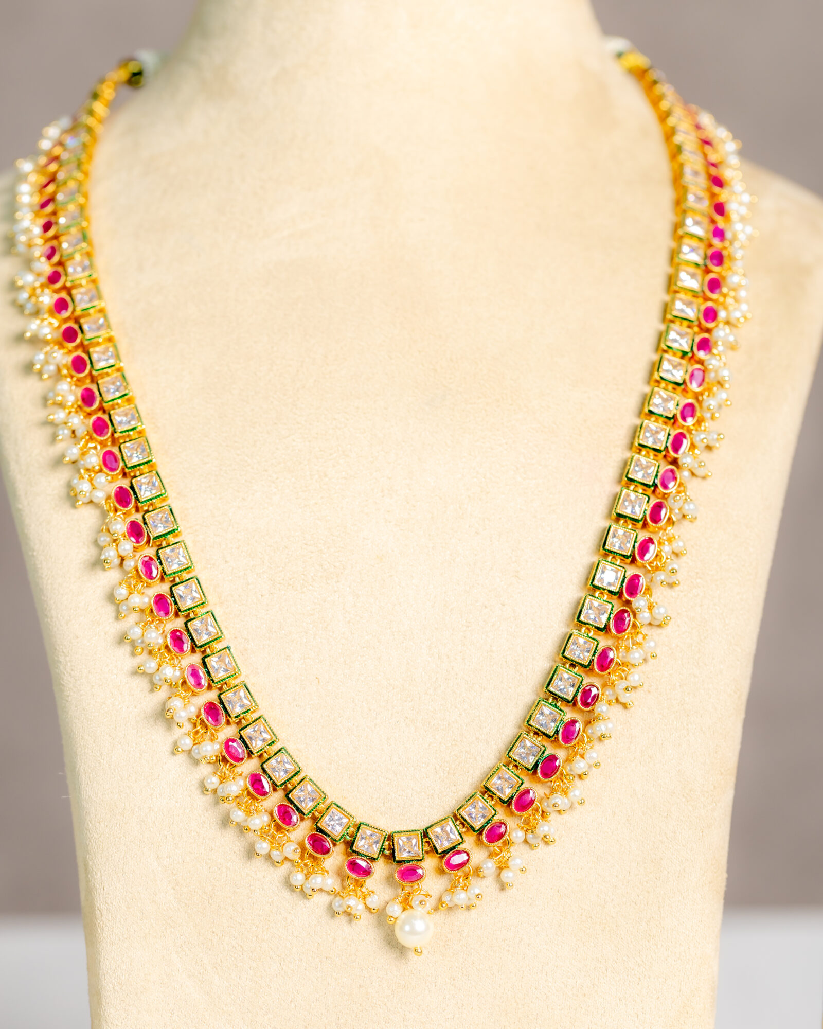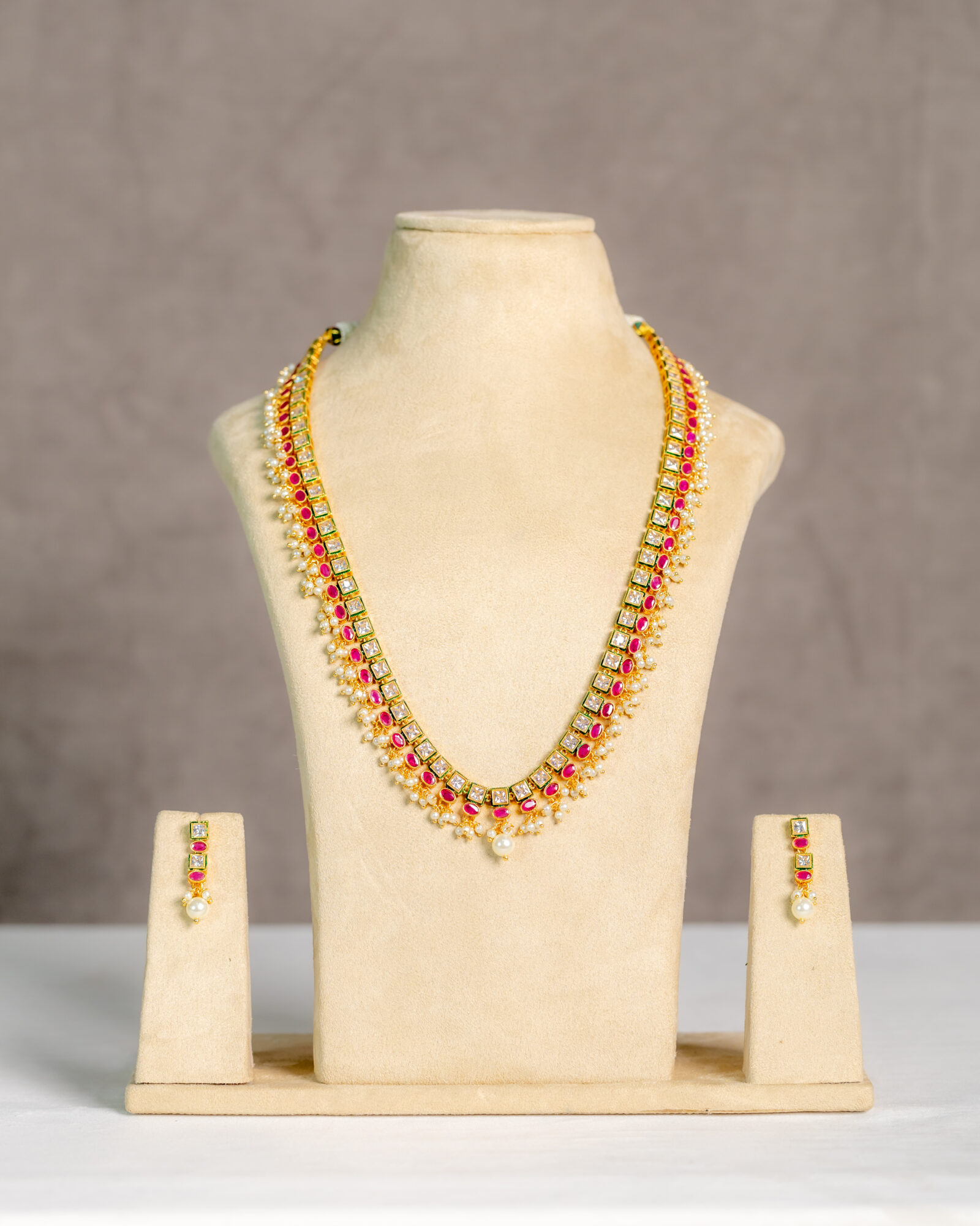 Juhain CZ Stone-studded Long Necklace Set with Ruby and Pearls