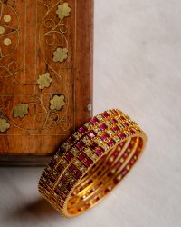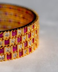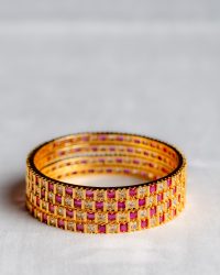 Laasya Ruby White Stone-studded Gold Bangle Set