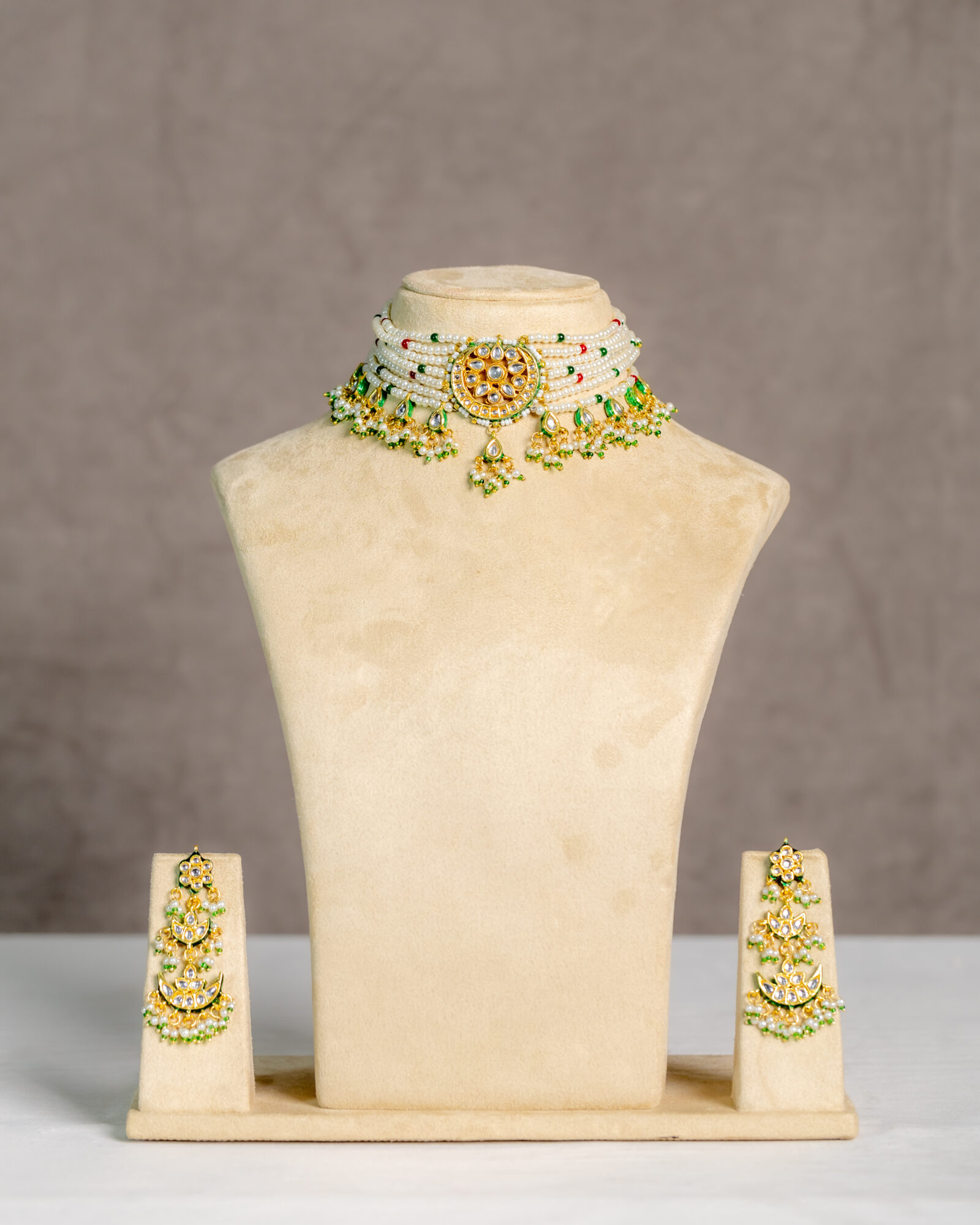 | The Malika Kundan and Pearl Choker was inspired by the beauty of the flowers. Crafted with high-quality freshwater pearls and kundan stones, this choker will radiate your beauty. Style with your favorite ethnic dress for the upcoming celebrations |