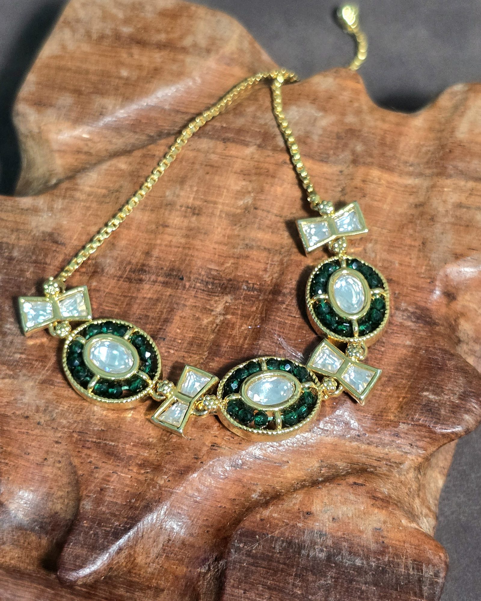 Nisha CZ Stone-studded Green and Gold-plated Bracelet