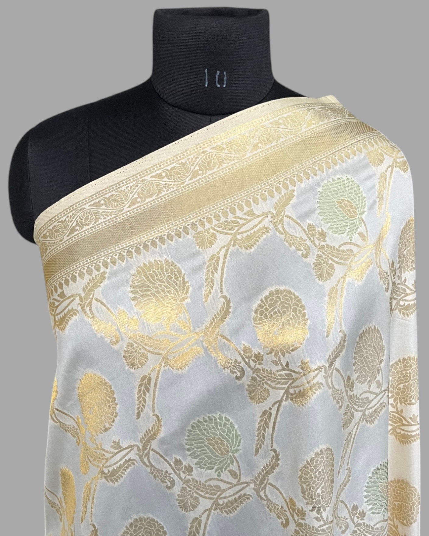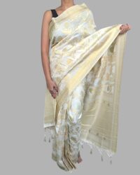 Pre-stitched White and Gold Art Silk Royal Banaras Saree