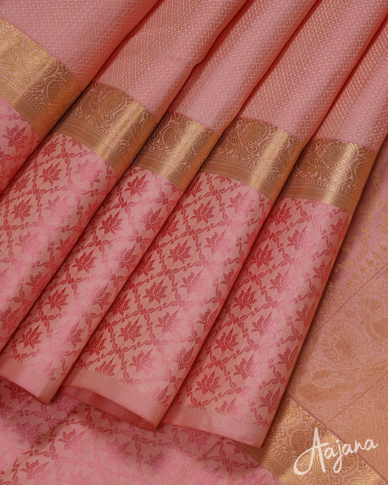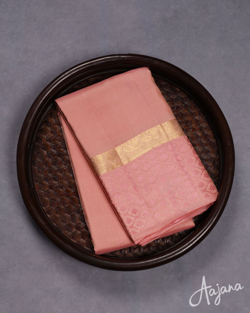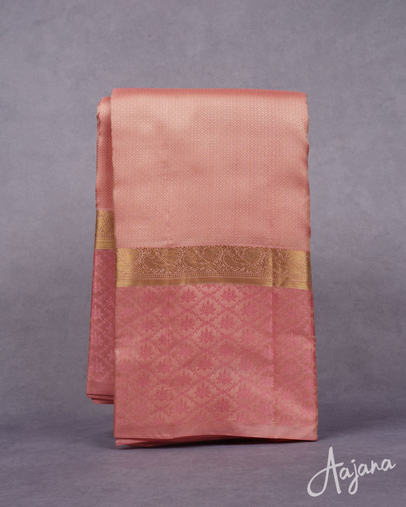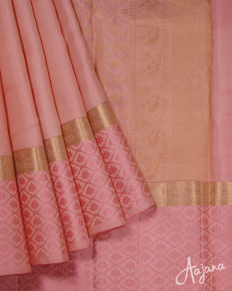 Pure Kanjivaram Saree in Pretty Pink with Self Design Zari and Lotus Thread Border