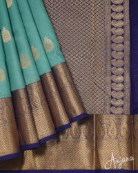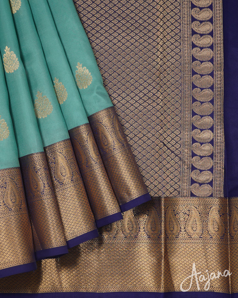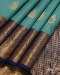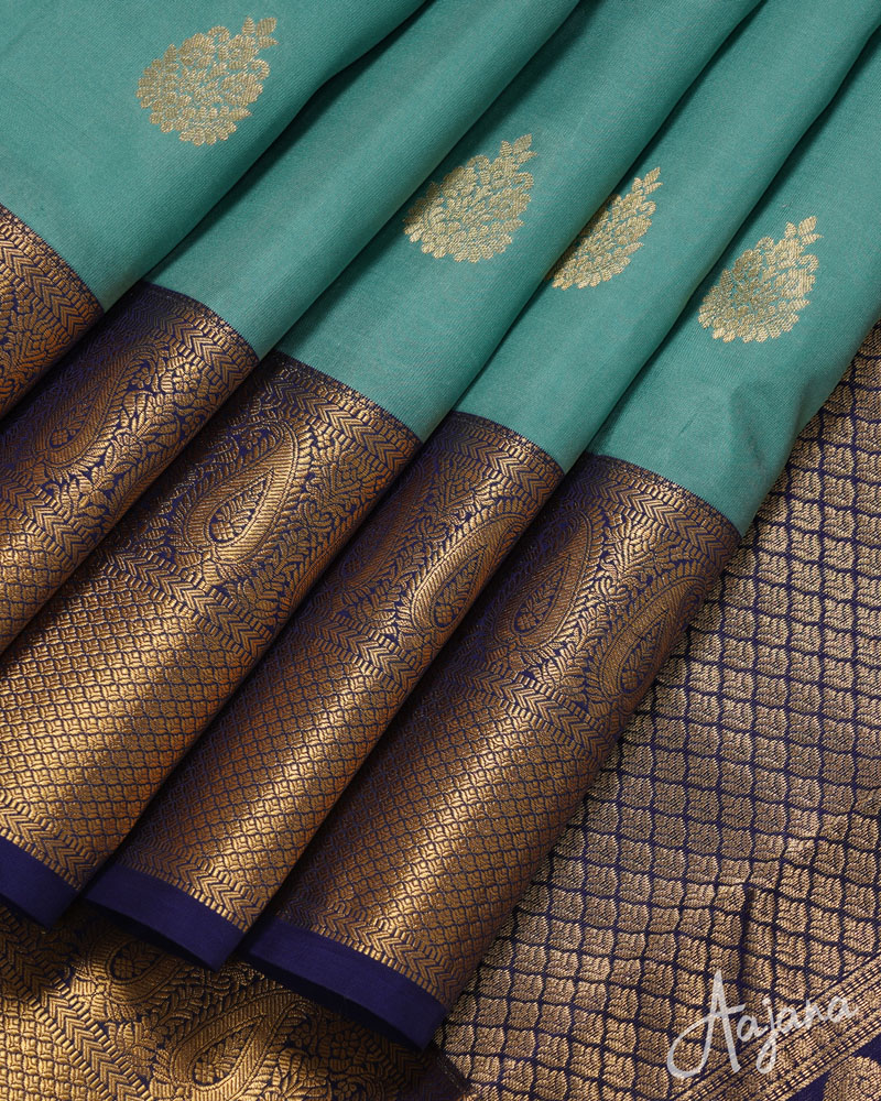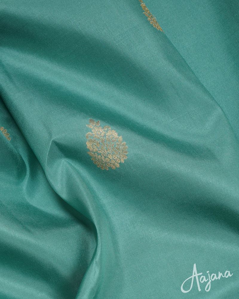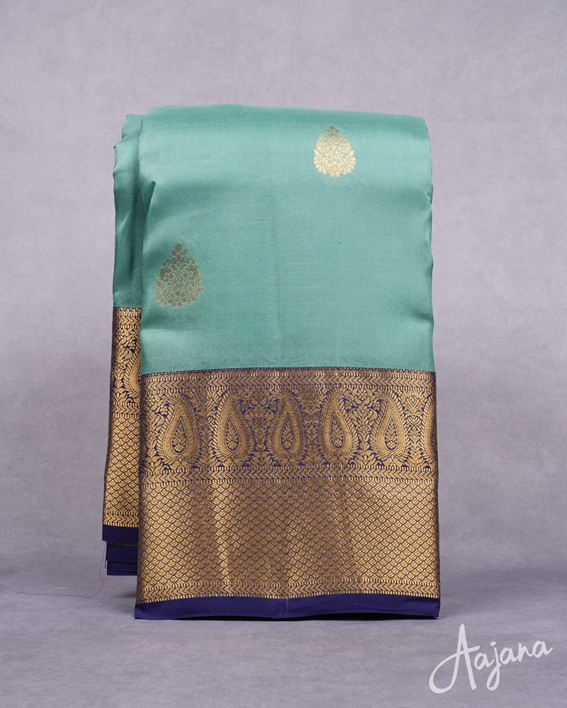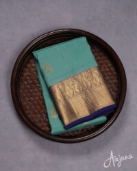 Pure Kanjivaram Silk Saree in Greenish-blue Colour with Gold Zari Butta and Border