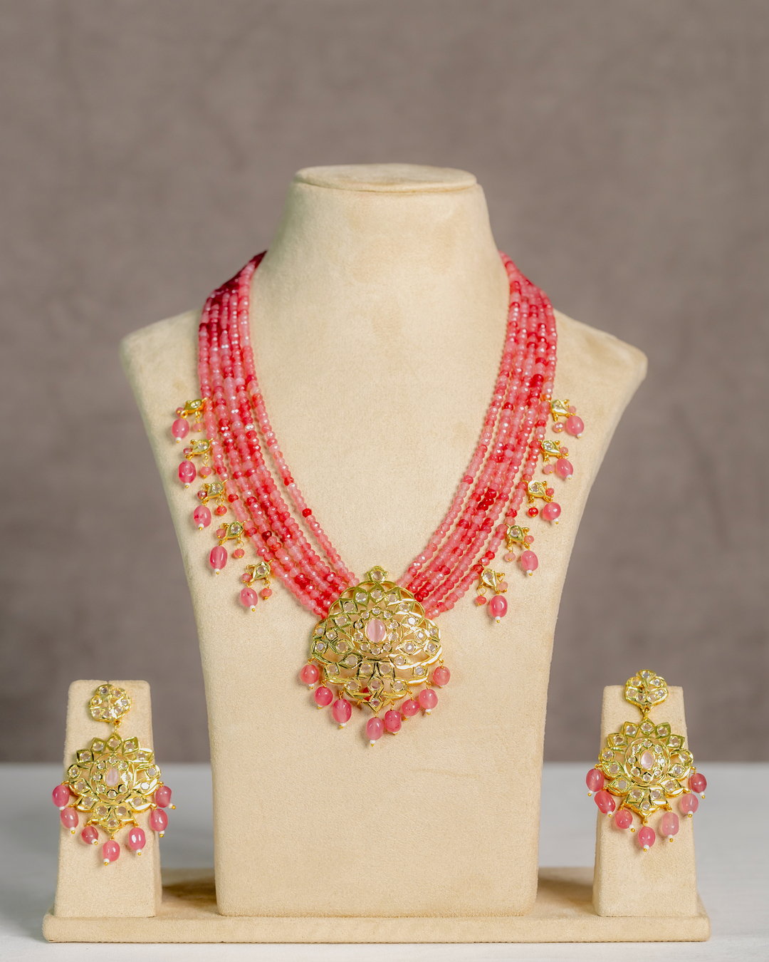 Radhya Stone-studded and Semi-precious Beaded Long Necklace Set