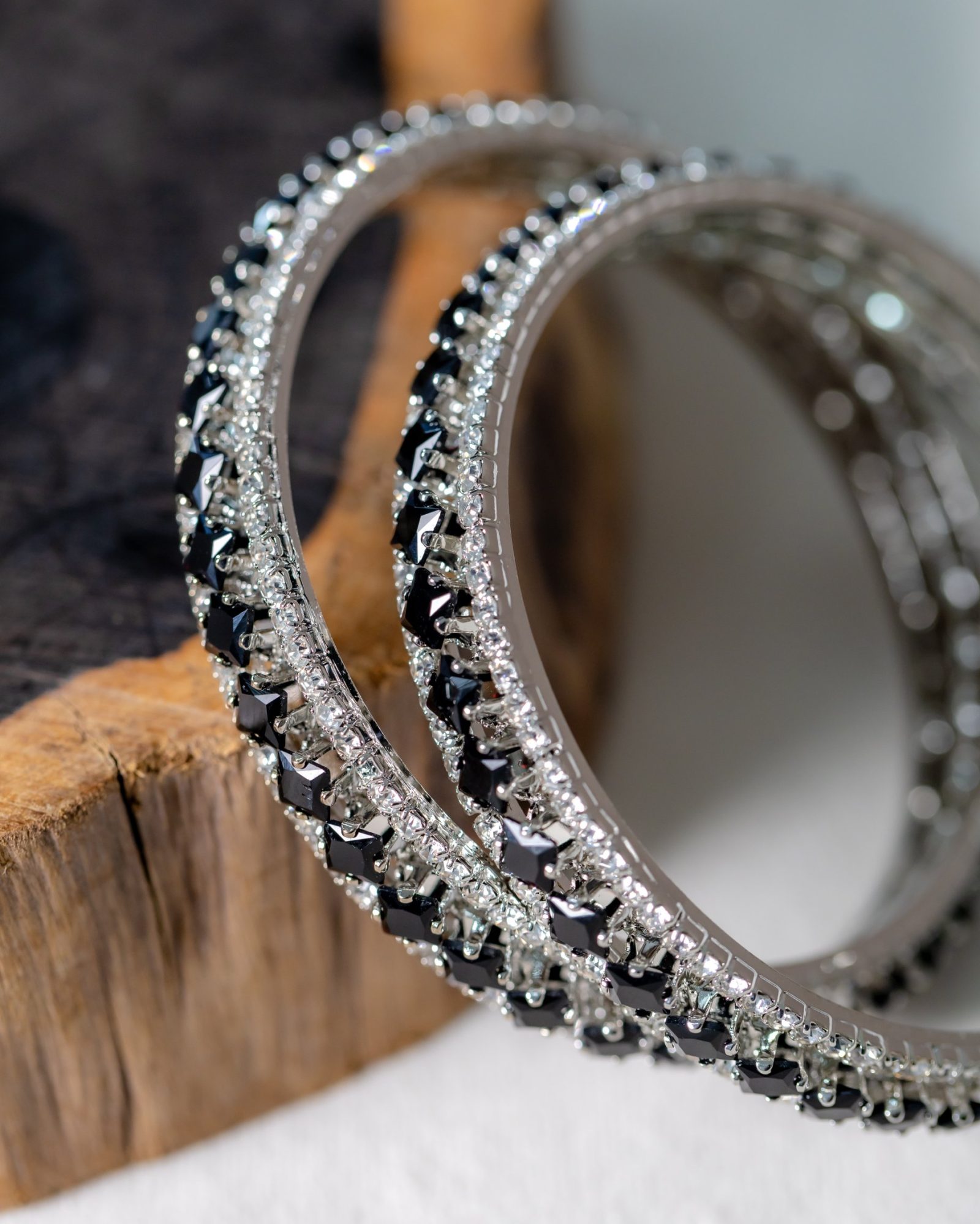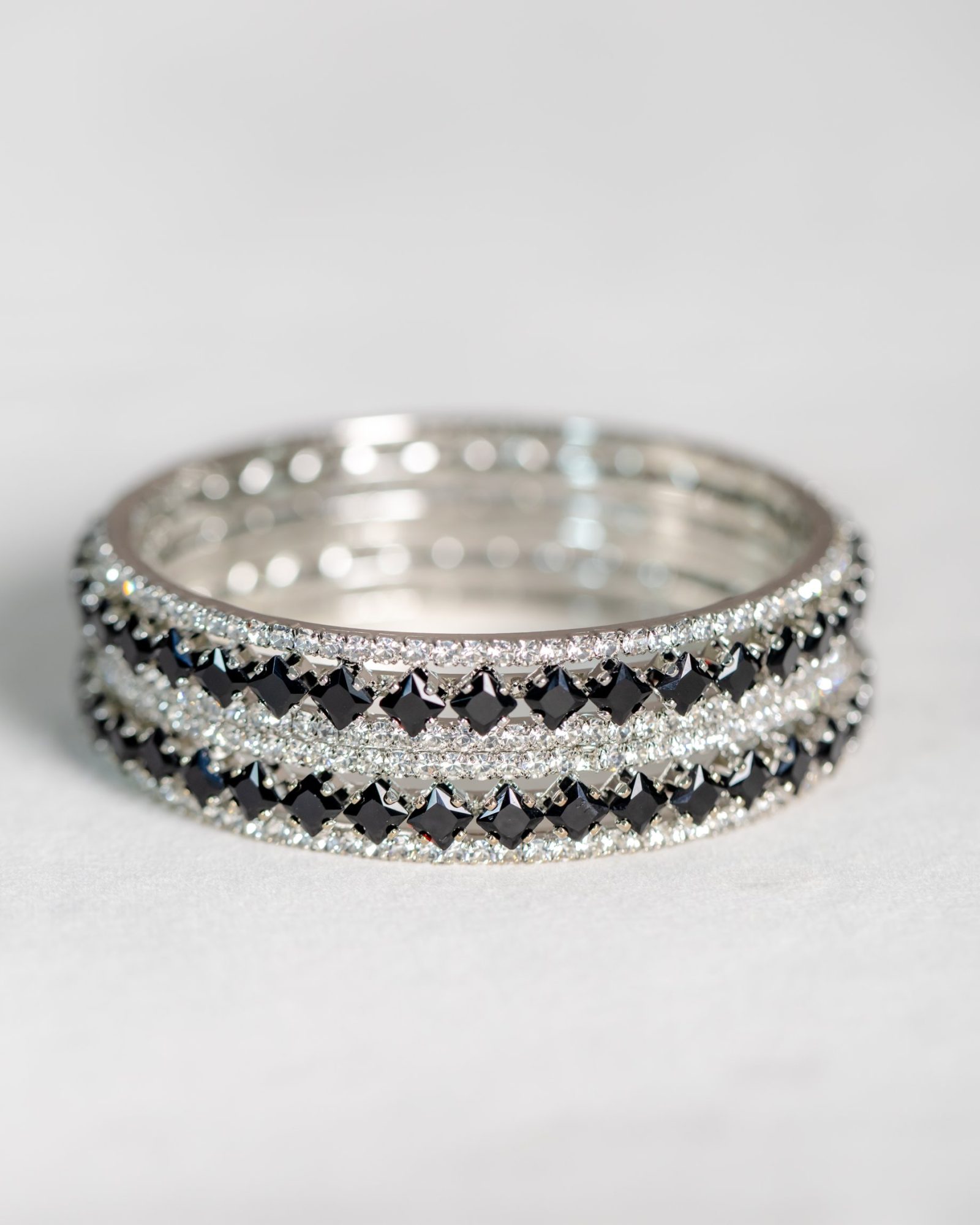 Rhea Black and White Stone-studded Silver Bangle Set
