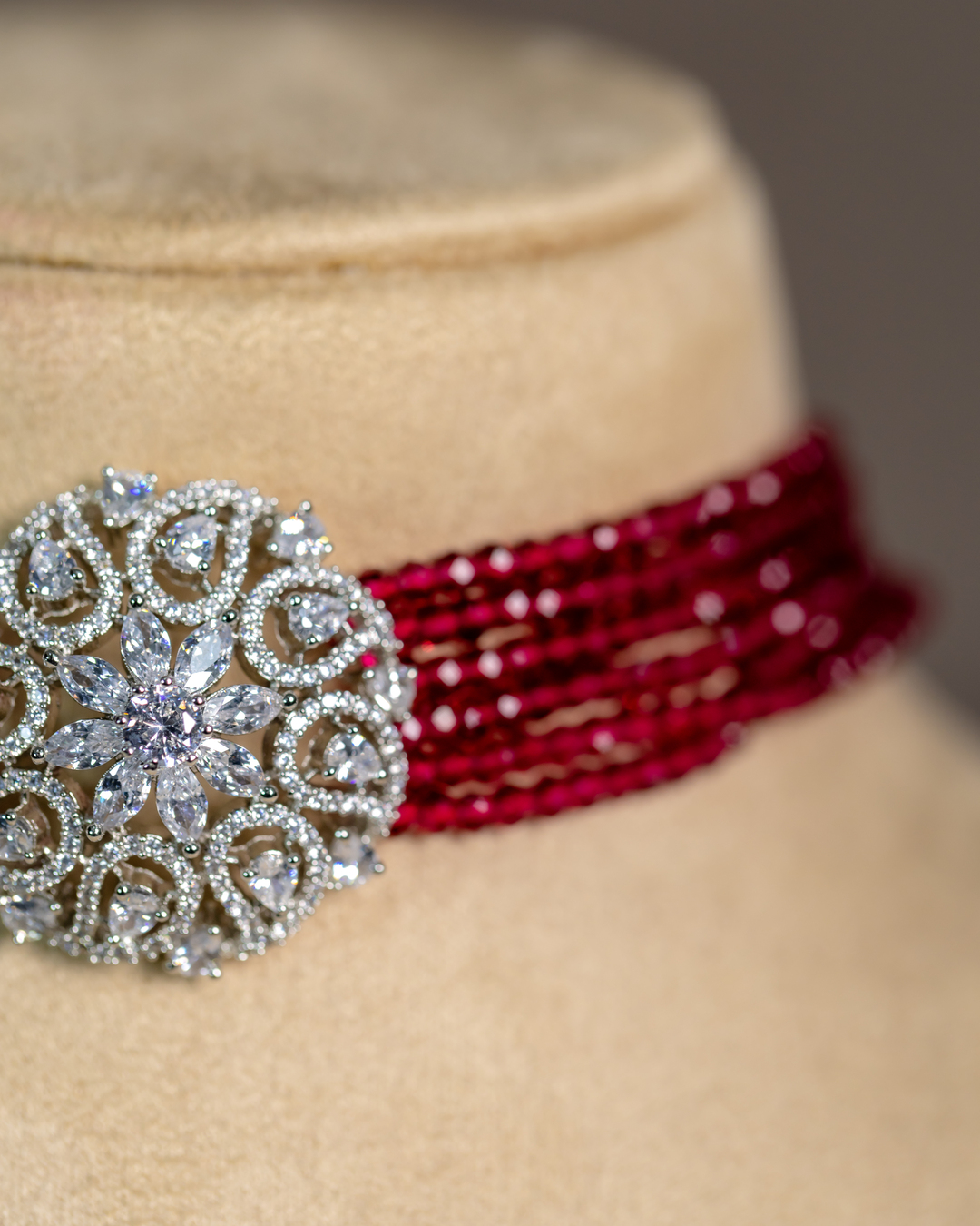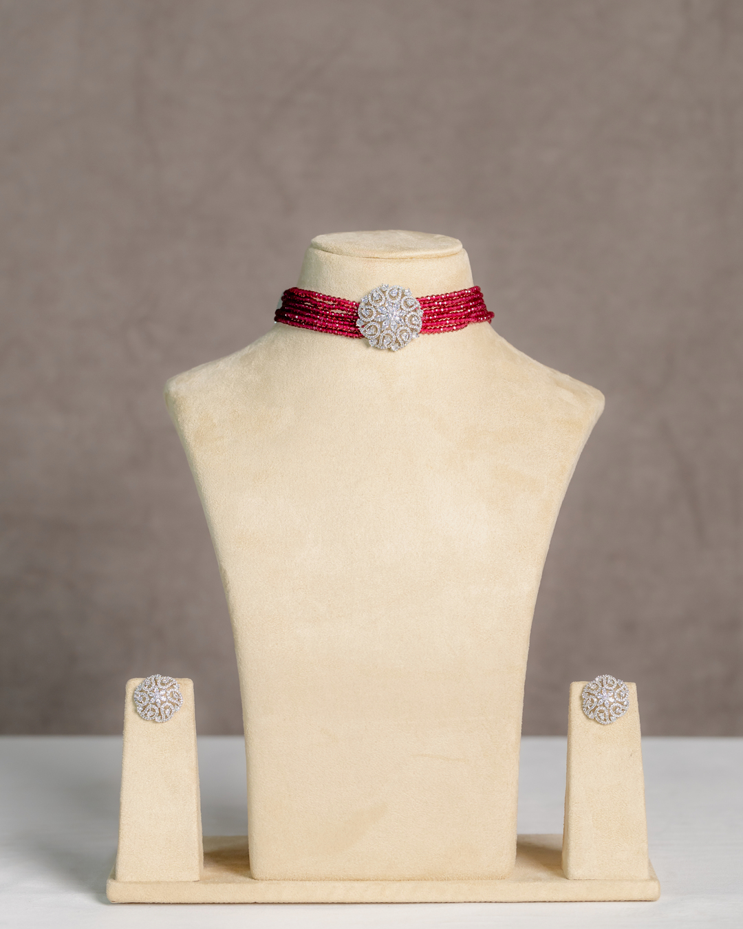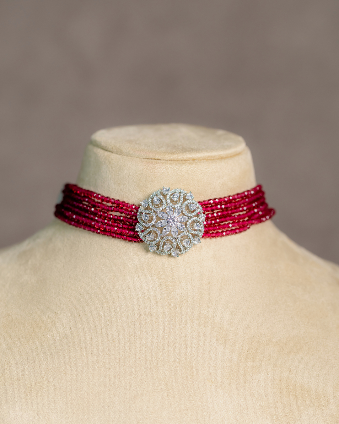 Sadhari Crystal and CZ Stone-studded Red Choker Set